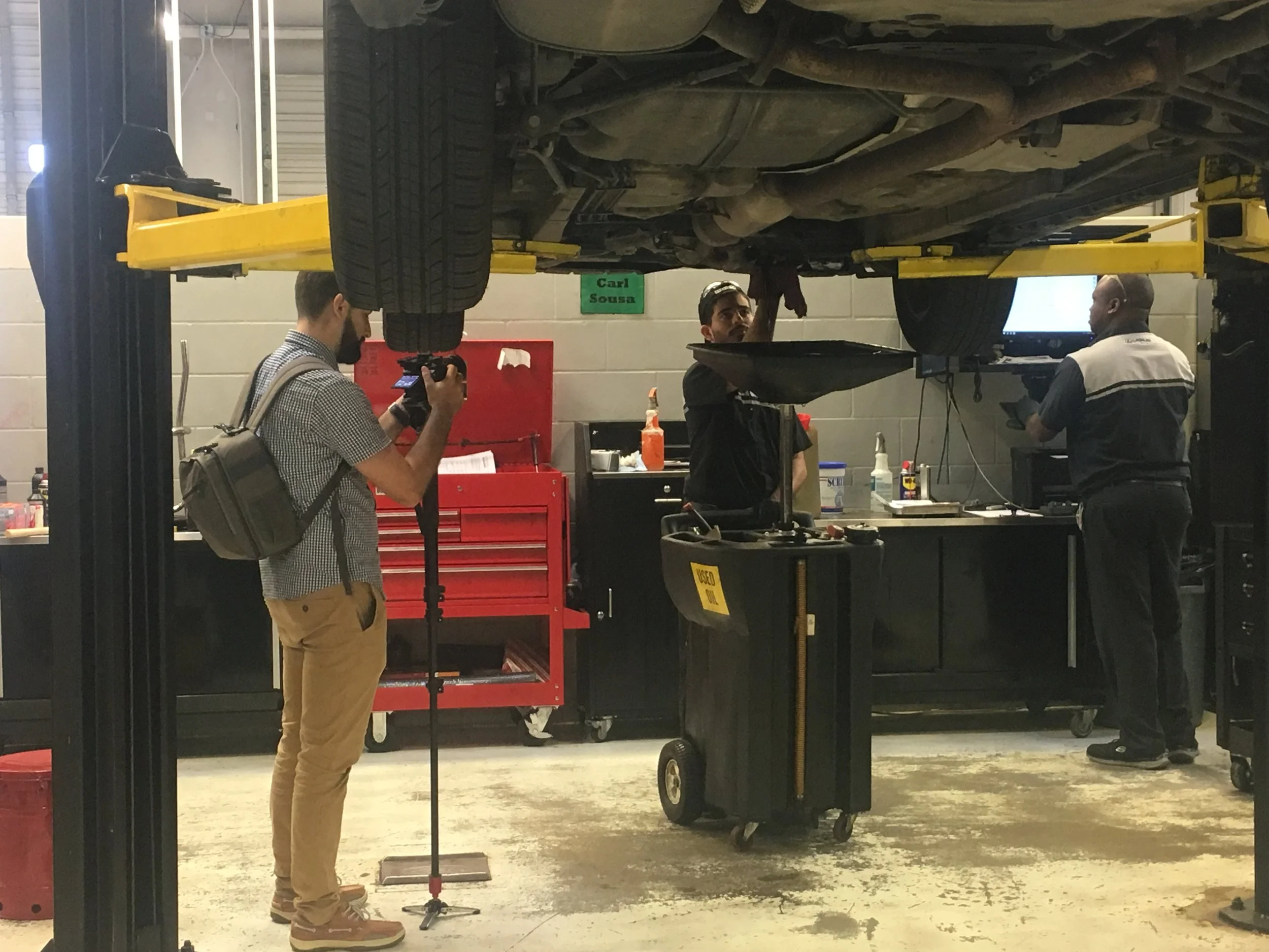 Behind the scenes! At brand28, we love capturing the culture of an organization. Shown is our video ninja getting down and dirty with the Group 1 Automotive mechanic crew.