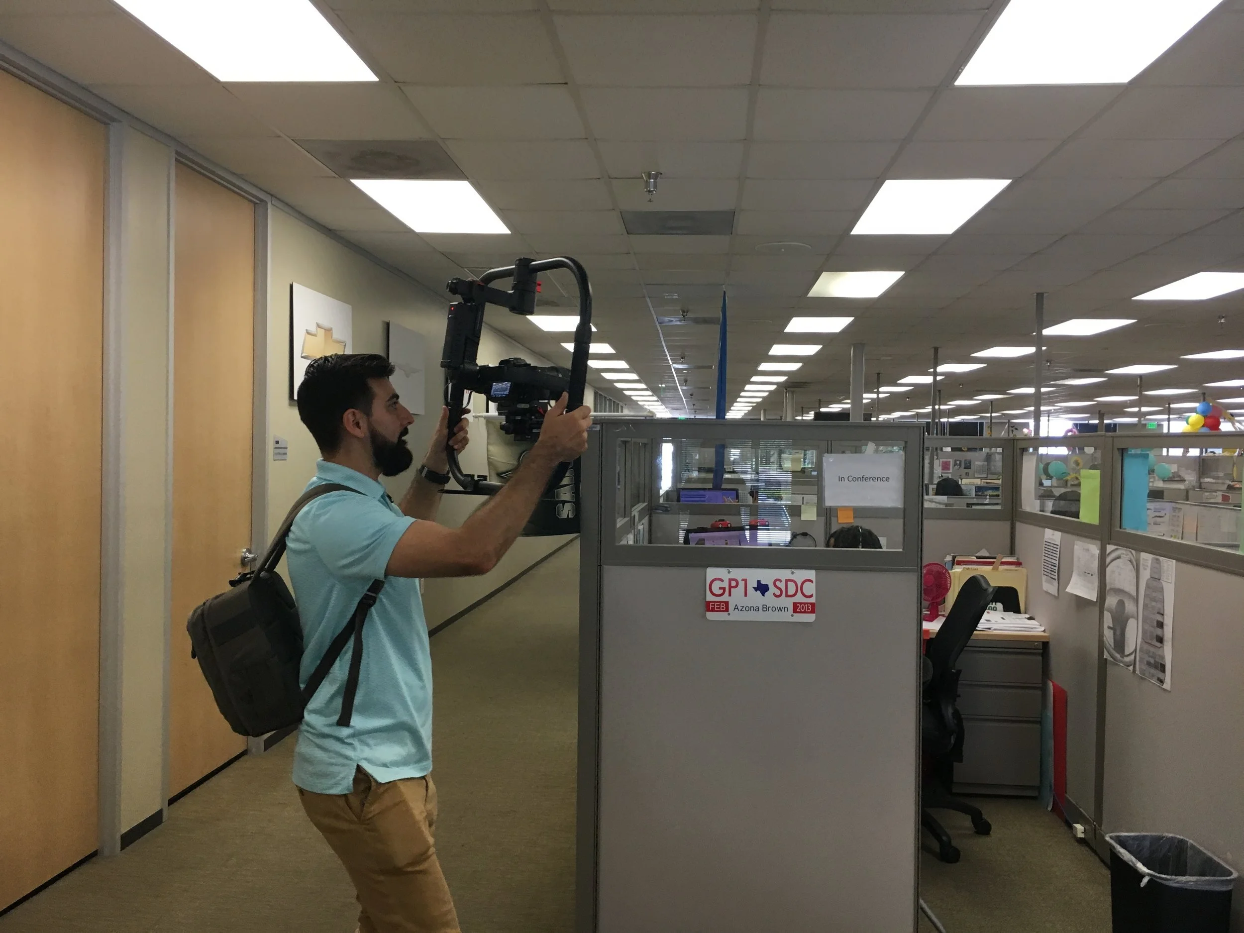 Behind the scenes! Our video ninja filming B-roll of the offices.