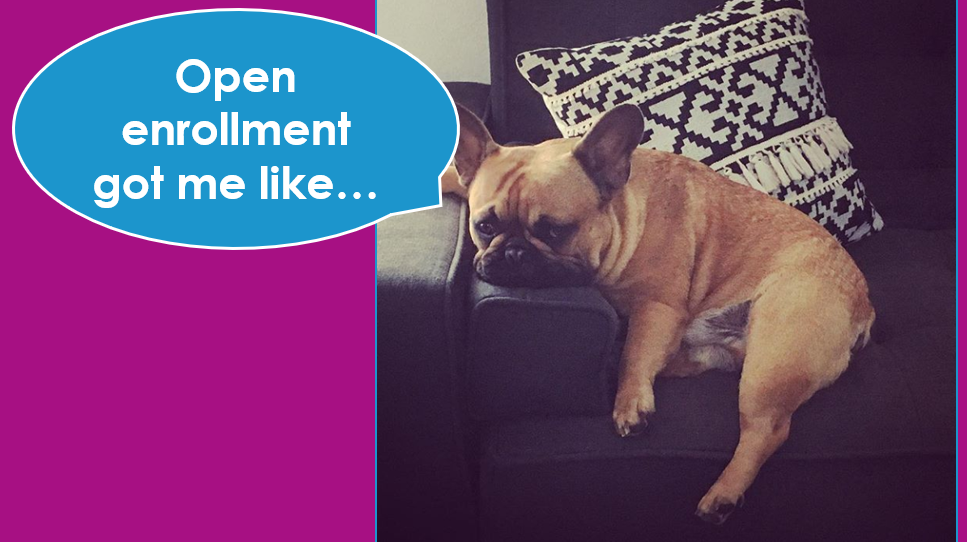 Let’s be honest, not every day at work is going to be glorious. That’s why they have to pay us to be there. But we’re all people, and people like to laugh! Incorporate humor into your communications. I know, I know…you’re thinking how can I make benefits and Open Enrollment fun?? The answer is memes, GIFs and cute dogs – oh my!