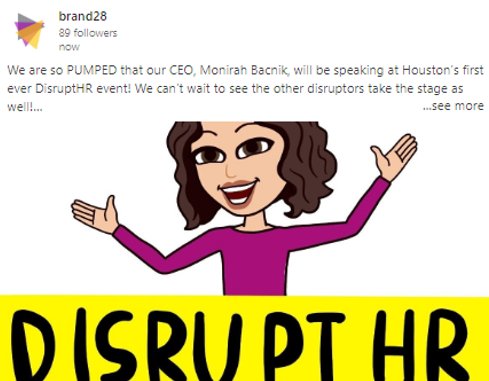 We are giving away a ticket to DisruptHR Houston for two of our lucky followers. Our CEO, Monirah Bacnik, will be speaking at Houston’s very first DisruptHR event. If you haven’t heard of DisruptHR, think TEDTalk but for the HR industry. There will be 10 speakers and they each have five minutes to blow your mind. It’s sure to be a fun event!