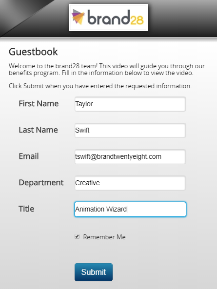 New-hires are scrambling to learn about their new work environment, which makes something as intangible as a video easy to push aside. Our most successful clients require new employees to watch their onboarding videos and enforce this requirement by asking employees to sign a form. If your video agency is tech-savvy (wink, wink) they can make tracking employee participation super easy. Check out an example of a “guestbook” we create for our clients to collect employee “attendance”.