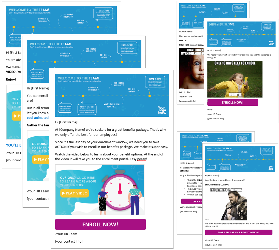 Please note: Email campaign is designed for employers who offer online enrollment. Employers who have paper enrollment can use the campaign, but modifications will need to be made.