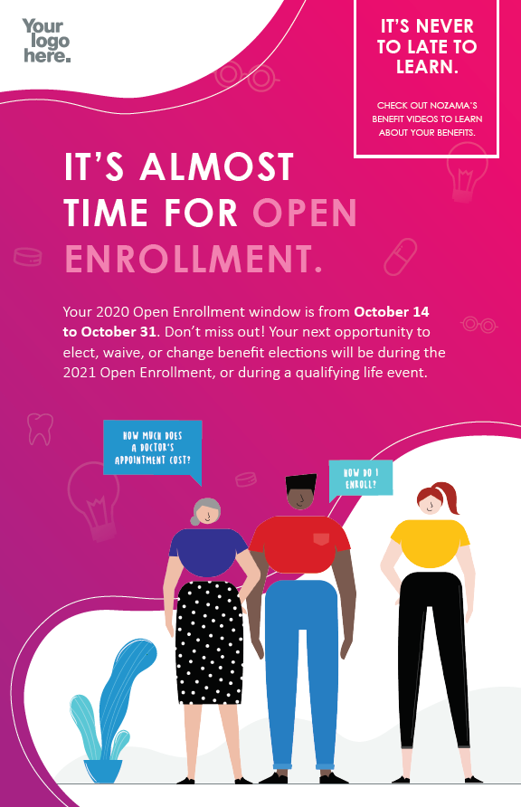 Help promote open enrollment season with a poster. Hang it up in the lunchroom, in the hallway, in the conference room, wherever!