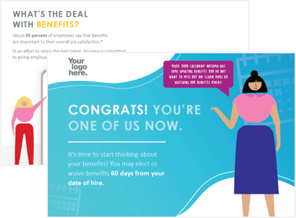 What we customize for you: Colors, company name, logo, enrollment dates and top four benefits.